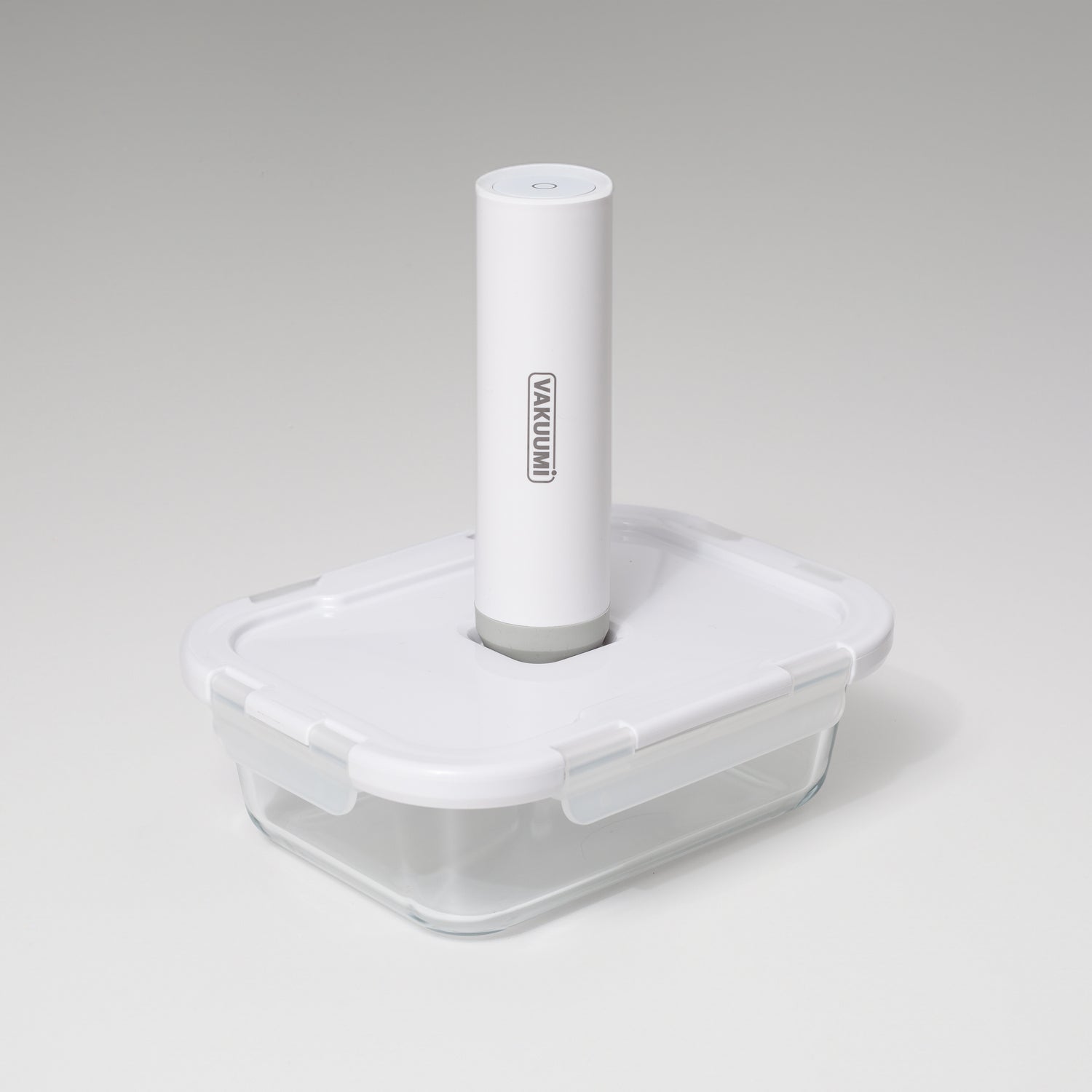 - Stapelbares Glas-Vakuumbehälter-Set mit Kunststoffdeckel zur platzsparenden Aufbewahrung.